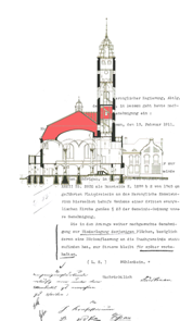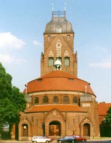 Deren Architekt war Friedrich Gothe (1872–1951): Er entwarf das Kirchenschiff als Rundkuppelbau, an das er an der Ostseite Kirchturm, Pfarrhaus und Kirchdienerhaus anfügte. So entstand ein V-förmiger Grundriss.