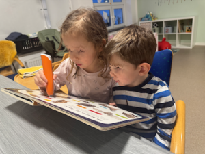 Kurz vor dem Abendbrot habt ihr euch nebeneinander auf Stühle gesetzt und gemeinsam ein Tiptoi-Buch angeschaut. ***** hat dir vieles erklärt, und du hast interessiert zugehört. Ihr habt dabei viel gelacht und die gemeinsame Zeit sichtbar genossen.